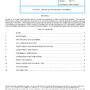 This SAE Standard is intended for all sizes of fuel filters, so a variety of test stands may be required depending upon flow rate. The low contamination level, downstream clean-up filter, and short duration of the test, ensures that the particle retention ability of the filter is measured in a single pass as no appreciable loading or regression will occur.