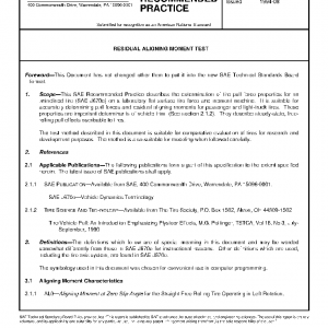 This SAE Recommended Practice describes the determination of tire pull force properties for an uninclined tire (SAE J670e) on a laboratory flat surface tire force and moment machine. It is suitable for accurately determining pull forces and residual aligning moments for passenger and light-truck tires. These properties are important determinants of vehicle trim (See section 2.1.2). They describe steady-state, free-rolling pull effects ascribable to tires.