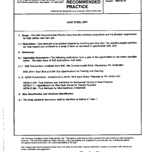 This SAE Recommended Practice describes the chemical composition and the physical requirements for high carbon cast steel grit.