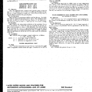 These specifications cover dipped goods and coatings made from compounded latex. Products manufactured from this material include boots, coated clips, coated sponge parts, and coated fabrics for automotive applications.