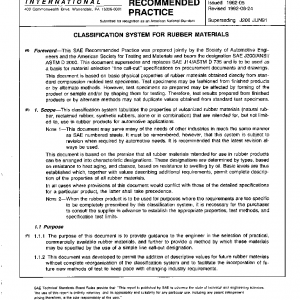 This classification system tabulates the properties of vulcanized rubber materials (natural rubber, reclaimed rubber, synthetic rubbers, alone or in combination) that are intended for, but not limited to, use in rubber products for automotive applications.