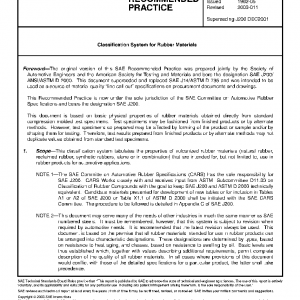 This classification system tabulates the properties of vulcanized rubber materials (natural rubber, reclaimed rubber, synthetic rubbers, alone or in combination) that are intended for, but not limited to, use in rubber products for automotive applications.