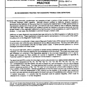 RECOMMENDED PRACTICE FOR DIAGNOSTIC TROUBLE CODE DEFINITIONS