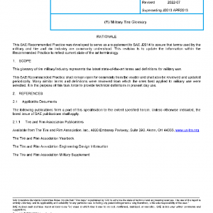 This glossary of tire military/industry represents the latest state-of-the-art terms and definitions for military use.