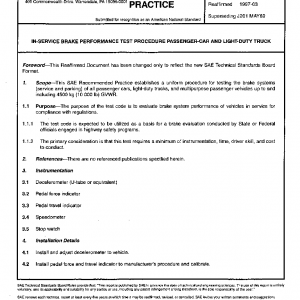 This SAE Recommended Practice establishes a uniform procedure for testing the brake systems (service and parking) of all passenger cars, light-duty trucks, and multipurpose passenger vehicles up to and including 4500 kg (10 000 lb) GVWR.
