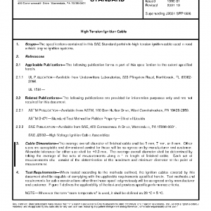The specifications contained in this SAE Standard pertain to high tension ignition cable used in road vehicle engine ignition systems.