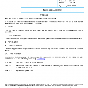 This SAE Standard specifies the general requirements and test methods for non-shielded, high-voltage ignition cable assemblies.