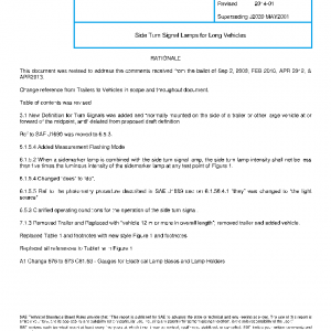 This SAE Recommended Practice provides test procedures, requirements, and guidelines for side turn signal lamps intended for use on vehicles 12 m or more in overall length, except pole trailers. Side turn signal lamps conforming to the requirements of this document may be used on other large vehicles such as trucks, truck tractors, buses, and other applications where this type of lighting device is desirable. It is not intended for use on shorter vehicles due to the higher intensity requirements of SAE J2039 compared to the SAE J914 devices.