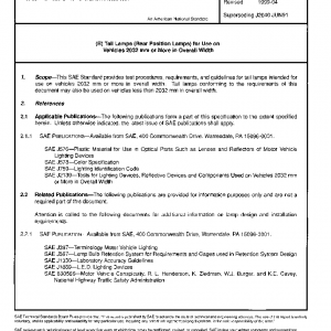 This SAE Standard provides test procedures, requirements, and guidelines for tail lamps intended for use on vehicles 2032 mm or more in overall width. Tail lamps conforming to the requirements of this document may also be used on vehicles less than 2032 mm in overall width.