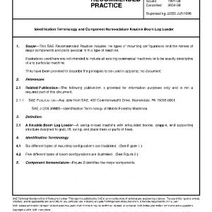 Identification Terminology and Component Nomenclature Knuckle Boom Log Loader(Cancelled Jun 2004, Superseded by ISO 17591)