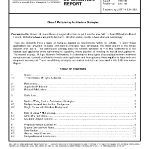The subject matter contained within this SAE Information Report is set forth by the Class A Task Force of the Vehicle Network for Multiplexing and Data Communications (Multiplex) Committee as information the network system designer should consider. The Task Force realizes that the information contained in this report may be somewhat controversial and a consensus throughout the industry does not exist at this time. The Task Force also intends that the analysis set forth in this document is for sharing information and encouraging debate on the benefits of utilizing a multiple network architecture.