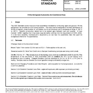 This SAE Standard covers hose and hose assemblies intended for conducting liquid and gaseous R134a refrigerant in automotive air-conditioning systems. The hose shall be designed to minimize permeation of R134a refrigerant, contamination of the system, and to be functional over a temperature range of –30 °C to 125 °C. Specific construction details are to be agreed upon between user and supplier. A hose marked “J2064” signifies that it has been coupled, tested, and has met the requirements of SAE J2064. It is the hose assembly manufacturer’s responsibility to see that the assemblies meet the specified acceptance criteria for this specification.