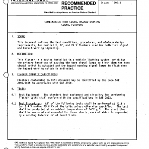 This document defines the test conditions, procedures, and minimum design requirements, for nominal 6, 12, and 24 V flashers used for both turn signal and hazard warning signaling.