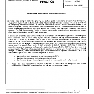 This SAE Recommended Practice establishes a nomenclature for categorizing low carbon automotive hot rolled sheet, cold rolled sheet, and zinc and zinc alloy coated sheets.