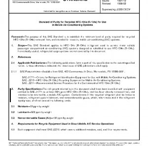 Standard of Purity for Recycled HFC-134a (R-134a) for Use in Mobile Air-Conditioning Systems