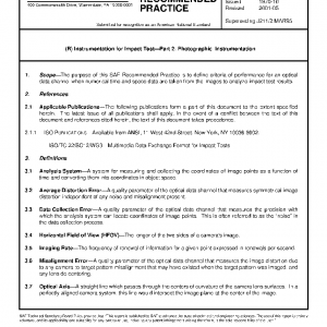 The purpose of this SAE Recommended Practice is to define criteria of performance for an optical data channel when numerical time and space data are taken from the images to analyze impact test results.