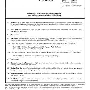 This SAE Standard provides general design performance requirements and related test procedures for composite lighting unit assemblies, other than signaling and marking devices, used on construction and industrial machines as defined in SAE J1116.