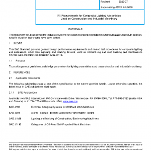 This SAE Standard provides general design performance requirements and related test procedures for composite lighting unit assemblies, other than signaling and marking devices, used on earthmoving and road building and maintenance off-road work machines as defined in SAE J1116.