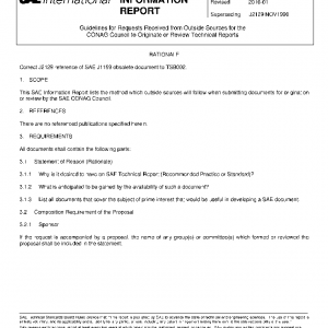 This SAE Information Report lists the method which outside sources will follow when submitting documents for origination or review by the SAE CONAG Council.