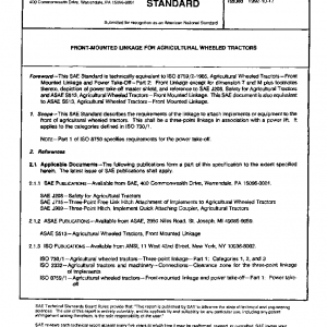 This SAE Standard describes the requirements of the linkage to attach implements or equipment to the front of agricultural wheeled tractors. This shall be a three-point linkage in association with a power lift. It applies to the categories defined in ISO 730/1.