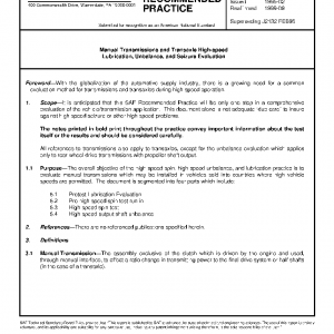 It is anticipated that this SAE Recommended Practice will be only one step in a comprehensive evaluation of the vehicle/transmission application. This document alone is not adequate “due care” to insure against high-speed seizure or other high-speed problems.