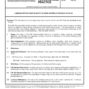 The scope of this SAE Recommended Practice is to provide a simple, practical, and broadly applicable test procedure for appraising luminous Illuminant A reflectance of enhanced reflecting safety glazing materials for road vehicles.