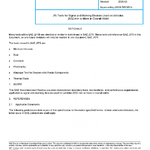 This SAE Recommended Practice provides standardized laboratory tests, test methods, and performance requirements applicable to signal and marking devices used on vehicles 2032 mm or more in overall width.