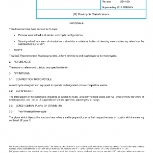 This SAE Recommended Practice provides uniform definitions and classifications for motorcycles.