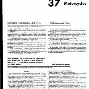 This SAE Recommended Practice provides uniform definitions for various types of motorcycles, their components, and basic characteristics.