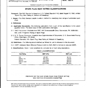 This SAE Standard details a uniform method for classifying heat ratings of unshielded spark plugs.
