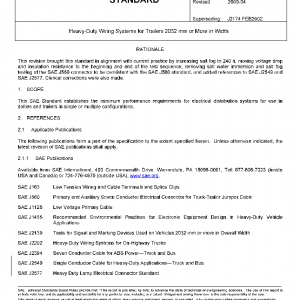 This SAE Standard establishes the minimum performance requirements for electrical distribution systems for use in dollies and trailers in single or multiple configurations.