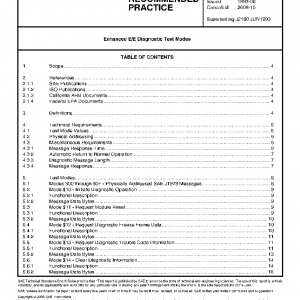 This SAE Recommended Practice describes the implementation of Enhanced Diagnostic Test Modes, which are intended to supplement the legislated Diagnostic Test Modes defined in SAE J1979. Modes are defined for access to emission related test data beyond what is included in SAE J1979, and for non-emission related data. This document describes the data byte values for diagnostic messages transmitted between diagnostic test equipment, either on-vehicle or off-vehicle, and vehicle electronic control modules. No distinction is made between test modes for emission related and non-emission related diagnostics. These messages can be used with a diagnostic serial data link such as described in SAE J1850 or ISO 9141-2.