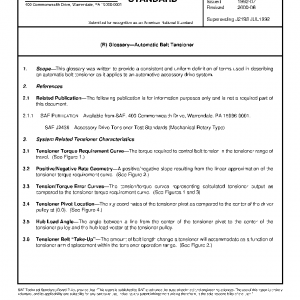 This glossary was written to provide a consistent and uniform definition of terms used in describing an automatic belt tensioner as it applies to an automotive accessory drive system.