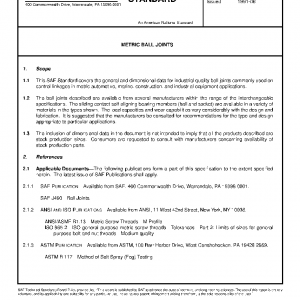 This SAE Standard covers the general and dimensional data for industrial quality ball joints commonly used on control linkages in metric automotive, marine, construction, and industrial equipment applications.