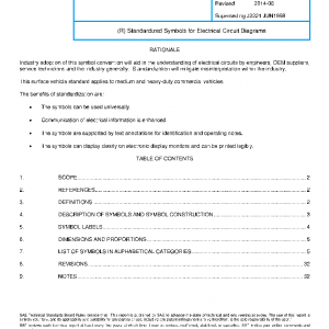 This SAE Recommended Practice identifies graphic symbols used in electrical circuit diagrams. The symbols aid troubleshooting electrical systems.