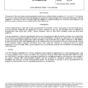 This SAE Standard establishes the minimum performance and endurance requirements for coiled electrical cables used for hookup between trucks, trailers and dollies. The component standards SAE J2394 (replaced SAE J1067) for cable and SAE J560 for connectors must be consulted to determine the complete performance and endurance requirements of the system. Related TMC Recommended Practices may be consulted for information associated with selection, installation and inspection of these coiled electrical cables. This document is intended to set out requirements for the majority of conditions rather than for specialized applications or environments.