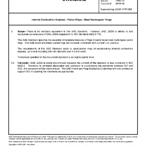 The requirements of this SAE Standard apply to steel piston rings of reciprocating internal combustion engines, up to and including 200 mm diameter and 4.5 mm width.
