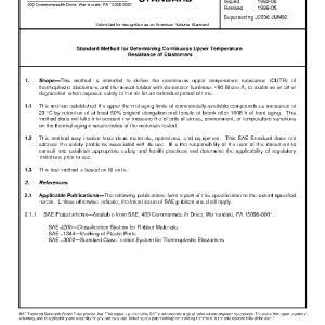 This method is intended to define the continuous upper temperature resistance (CUTR) of thermoplastic elastomers and thermoset rubber with durometer hardness ≤90 Shore A, to oxidation or other degradation when exposed solely to hot air for an extended period of time.