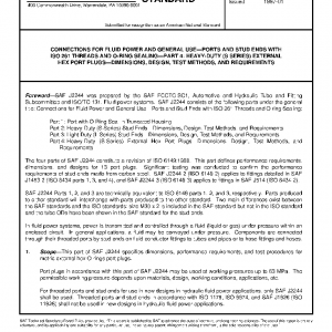 This part of SAE J2244 specifies dimensions, performance requirements, and test procedures for metric external hex O-rings port plugs.