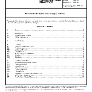 This SAE Recommended Practice provides general guidelines for measuring the splash and spray produced by vehicles operating over wet pavements. The guidelines describe both the video digitizing and the laser methods of analysis. The video-digitizing method uses video images and contrast measurements between black and white checkerboards when a spray cloud is superimposed on them as a means of measuring the obscuring spray. The laser method uses laser transmittance through the spray cloud as the means of measurement. It is left to the users of this practice to decide which method is best suited to their needs. There is no implied relationship between these two methods, although it is expected that the ranking of relative spray reduction between test vehicle configurations would be approximately the same. All sections listed in this document are to be considered as common to both methods, unless otherwise noted.