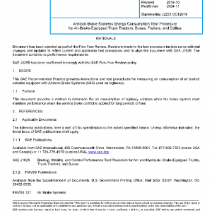 This SAE Recommended Practice provides instructions and test procedures for measuring air consumption of air braked vehicles equipped with Antilock Brake Systems (ABS) used on highways.