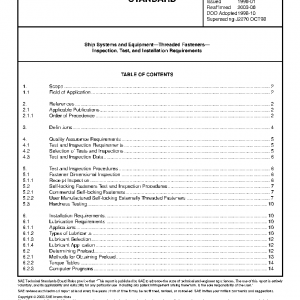 This document establishes engineering criteria and guidance for quality assurance requirements (including Test and Inspection) for procurement of threaded fasteners where such criteria and guidance is not otherwise provided by existing fastener standards or specifications. The document also provides requirements and test procedures for self-locking fasteners including those manufactured by the installing activity.