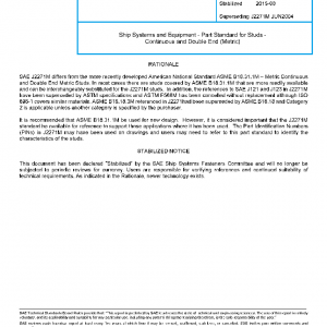 Ship Systems and Equipment – Part Standard for Studs – Continuous and Double End (Metric)(STABILIZED Aug 2015)