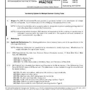 This SAE Recommended Practice provides a systematic method for the identification of multiple diameter cutting tools. It is intended to assist in the cataloging and supplying of these tools.