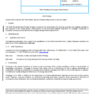 This SAE Recommended Practice provides procedures for determining shot peening coverage and relating coverage to part exposure to the media stream. Effectiveness of shot peening is directly dependent on coverage. Inadequate or excessive coverage can be detrimental to fatigue strength and component life.