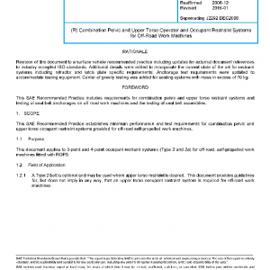 This SAE Recommended Practice establishes minimum performance and test requirements for combination pelvic and upper torso occupant restraint systems provided for off-road self-propelled work machines.