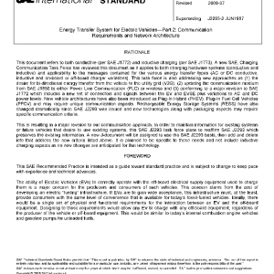SAE J2293 establishes requirements for Electric Vehicles (EV) and the off-board Electric Vehicle Supply Equipment (EVSE) used to transfer electrical energy to an EV from an Electric Utility Power System (Utility) in North America. This document defines, either directly or by reference, all characteristics of the total EV Energy Transfer System (EV-ETS) necessary to insure the functional interoperability of an EV and EVSE of the same physical system architecture. The ETS, regardless of architecture, is responsible for the conversion of AC electrical energy into DC electrical energy that can be used to charge the Storage Battery of an EV, as shown in Figure 1.