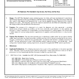 This SAE Part Standard covers selected screws, hex bolts, and nuts manufactured in accordance with American Society for Testing and Materials (ASTM) fastener standards. This document covers materials often used in ship systems and equipment but its use may be applied wherever fasteners of the covered materials are used. This document permits the fasteners covered to be identified and ordered by a part or identifying number (PIN) as defined in this document.