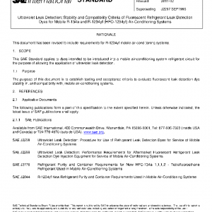 This SAE Standard applies to dyes intended to be introduced into a mobile air-conditioning system refrigerant circuit for the purpose of allowing the application of ultraviolet leak detection.