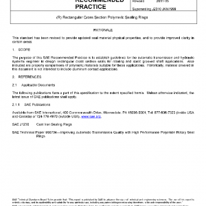 The purpose of this SAE Recommended Practice is to establish guidelines for the automatic transmission and hydraulic systems engineer to design rectangular cross section seals for rotating and static grooved shaft applications. Also included are property comparisons of polymeric materials suitable for these applications. Historically, material covered in this document is not intended to include aluminum contact applications.